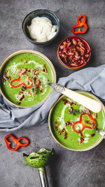 Lactosevrije romige spinaziesoep met spekjes lactosevrij