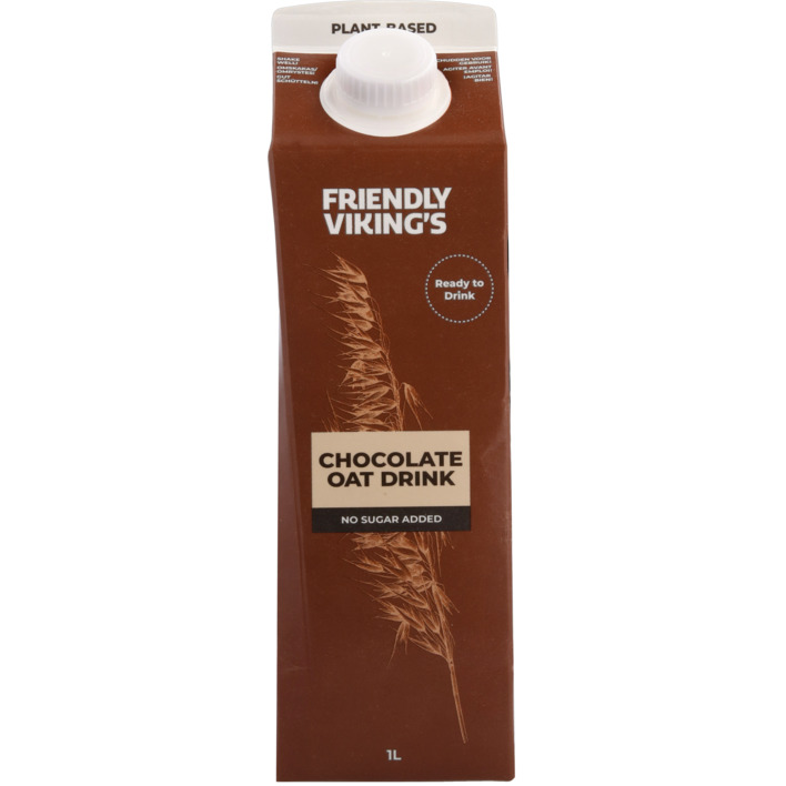 Friendly viking’s oat drink chocolate krijgt zijn smaak van echte cacao, met alleen natuurlijk suikers afkomstig van de hoge kwaliteit haver uit Finland. Zowel koud en warm het allerlekkerst. Volledig op haverbasis dus zonder melk, soya en noten. Geen toegevoegde suikers. 100% plantaardig. Verrijkt met vitaminen en calcium. Ze hebben ook haver proteine drink chocolade en haver proteine drink vanille.