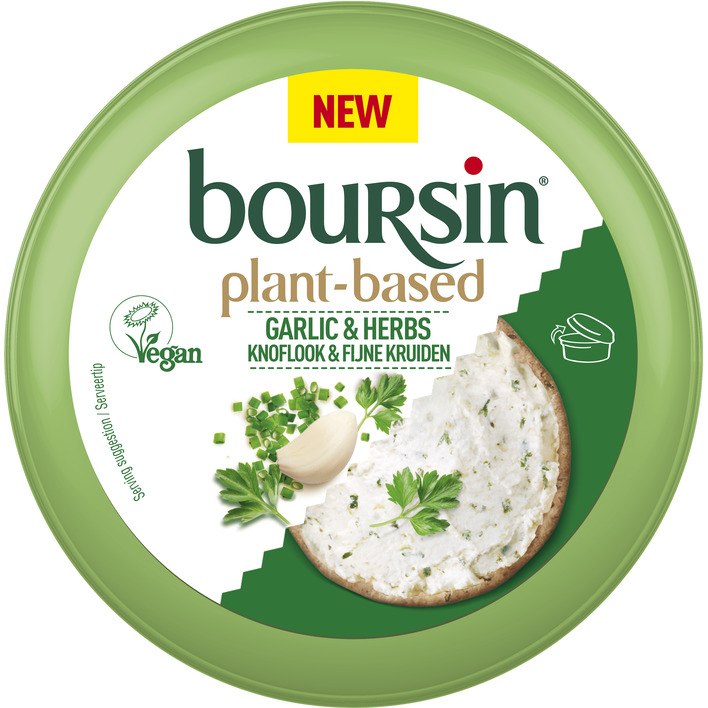 Spread op basis van zonnebloemolie en bamboevezels, met knoflook en fijne kruiden (veganistisch). Een uniek, heerlijk product op basis van zonnebloemen met de bekende kwaliteit van boursin. Perfect om te smeren of te dippen.