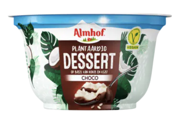 Almhof plantaardig dessert is een heerlijk romig toetje zoals je van Almhof gewend bent, maar dan op basis van kokos en rijst. Dat is nog eens plantaardig genieten! Ook in de smaak vanille verkrijgbaar.