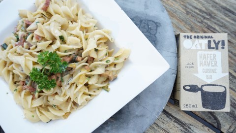 Vandaag moest mijn man overwerken, dus kon ik eindelijk weer pasta eten met room. Hij houdt daar niet zo van. Ik had de haver cuisine van Oatly gebruikt. Binnenkort online, super simpel om te maken. Ik heb er de volgende dag ook nog heerlijk van gesmuld tijdens de lunch.