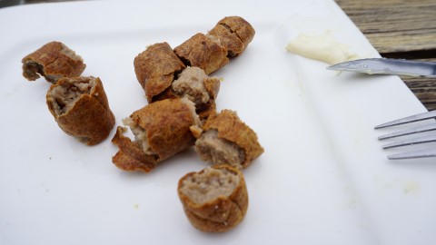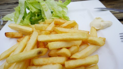 Ik ’s middags al even in de keuken gestaan, ik maakte appelstrudel en APPELFLAPPEN. Dus we hadden voor vanavond even snel de frietpan aangeslingerd. We hadden frietjes en frikandellen (Aldi) gebakken en ik had er nog wat ijsbergsla en een klodder Belze majoneis bijgeserveerd.