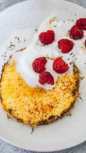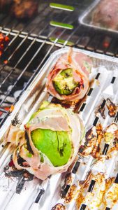 Vanavond hebben we iets uitgebreider gegeten. Ik maakte heel veel recepten uit het bbqboek van Green gypsyspices. Een hele andere beleving dan de grote brokken vlees als anders haha. Deze avocado had ik gevuld met gerookte makreel en lactosevrije crème fraiche en kruiden en gewikkeld in ontbijtspek. Ik ga er deze week nog een leuke blog over schrijven. Dus hou deze in de gaten. Een heerlijke gemarineerde zalm, wat dacht je daarvan? Feta (Dodoni suikers en koolhydraten op 0) om te dippen en heerlijke gemarineerde garnalen. En als toetje ananas met kokosroom of yoghurt en honing. Aanradertje hoor.