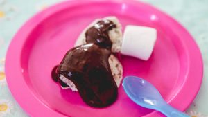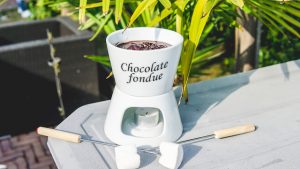 En als laatste maakte ik ook 2 heerlijke chocoladefondue’s. Eentje puur dus lactosevrij en de andere van melk chocolade. Voor mezelf had ik nog stracciatella ijs in de vriezer (deze hoop ik binnenkort online te zetten) en voor de rest gewoon uit ijs uit de winkel. Wat marshmallows erbij en genieten maar!