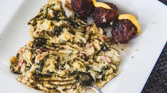 Heerlijke lactosevrije andijviestamppot met spekjes en walnoten. Zo simpel om te maken en het is erg lekker en gezond.