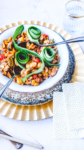 Deze heerlijke pittige kipsalade ontdekte ik op een 12,5 jarige bruiloft van een vriendin. En ik dacht deze wil ik thuis ook maken. Zo ontzettend lekker, en hou je niet van heel pittig voeg dan minder sambal toe. Of als jij juist wel erg van pittig houdt, voeg dan gerust meer sambal toe.