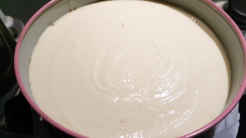 Bak de kruidnotencheesecake in de oven in 60 min. gaar.