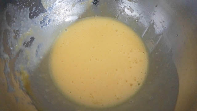 Splits de eieren. Klop nu de eierdooiers met de suiker schuimig zodat er belletjes ontstaan.