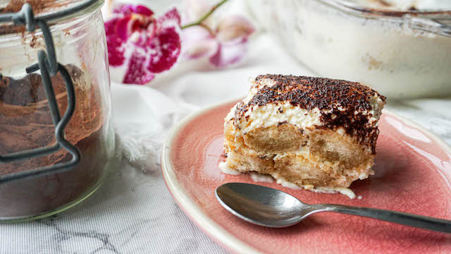 Bestrooi de tiramisu net voor het opdienen met de cacao door middel van een zeef. En klaar is je verrukkelijke tiramisu.