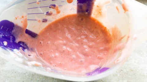 Doe de roomkaas bij de aardbeienpuree. Mix dit goed door elkaar met een spatel of met staafmixer/blender als het niet lukt.