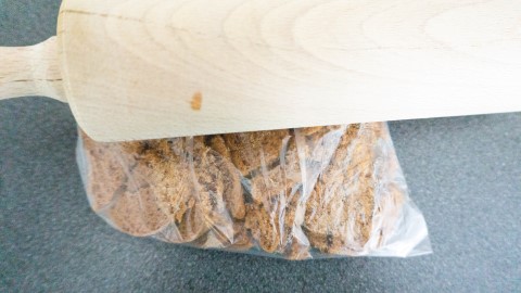 Verkruimel de koekjes met de keukenmachine (of doe de koekjes in een plastic zakje met een knoop erin en rol er met een deegroller overheen) en maak er kruimels van.