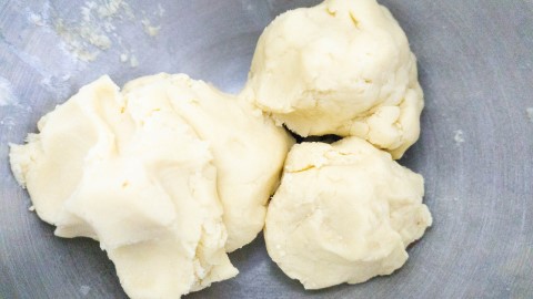 Verdeel het deeg in drie stukken, twee iets kleinere en één groter stuk voor de bodem.