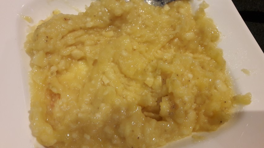Prak de banaan heel fijn met een vork op een diep bord of in een kom.