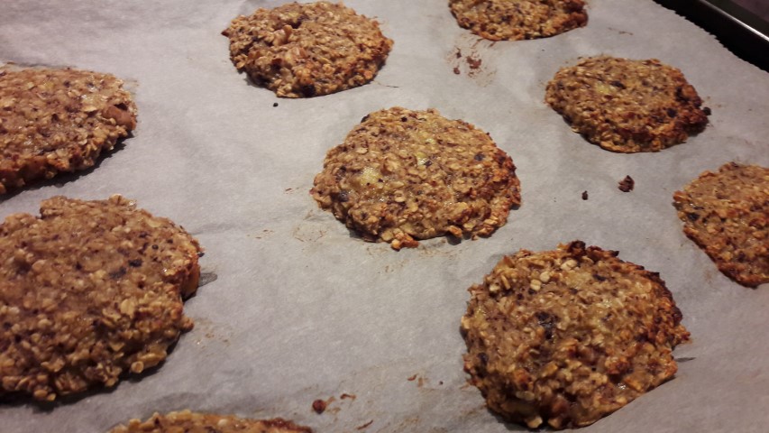 Deze heerlijke en gezonde banaan-havermout koekjes zag ik voorbij komen bij Wilma op instagram. Ze had er bij gezet hoe zij ze gemaakt had. Dus ik ben ook de keuken ingedoken. Uiteindelijk heb ik ze iets aangepast door iets meer havermout toe te voegen. Je kunt ze ook iedere keer weer anders maken door een ander ingrediënt toe te voegen. Bijvoorbeeld kokos, pecannoten of amandelen. Ik vind de combinatie van banaan, havermout, extra pure chocola en walnoten het lekkerst. Duik ook snel de keuken in en maak deze simpele koekjes in een handomdraai.