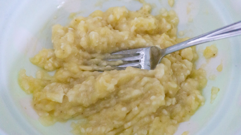 Prak de banaan fijn met een vork.