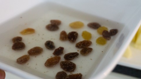 Kook een beetje water in de waterkoker. Pak de krenten en doe ze in een schaaltje en voeg het kokende water toe, en laat ze ongeveer 10 minuten wellen.