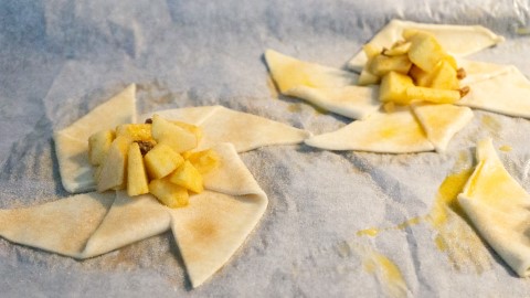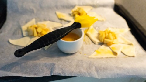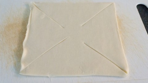 Haal 6 plakjes bladerdeeg uit de diepvries, en laat 10 minuten ontdooien.