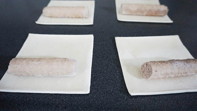 Haal de bladerdeeg uit de diepvries samen met de frikandellen. En laat 10 minuten ontdooien.