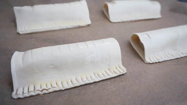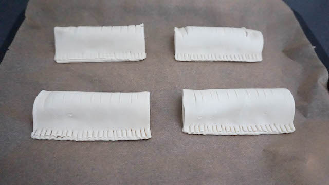 Snij er met een mesje inkepingen in op de bovenkant. Druk de zijkant aan met een vork.