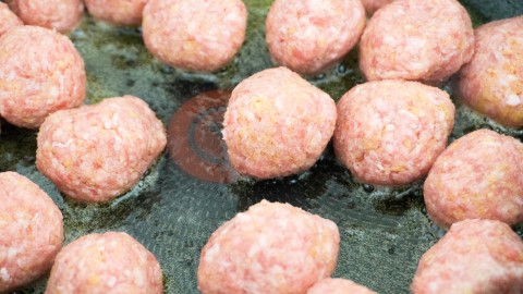Kneed alles goed door elkaar. En draai er gehaktballetjes van, net zo groot als jij wilt. Ik maak ze net zo groot als een walnoot, dat vinden wij het lekkerst.