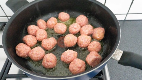 Voeg de gehakballetjes toe, en bak er rondom er een lekker korstje aan. Eetsmakelijk!!