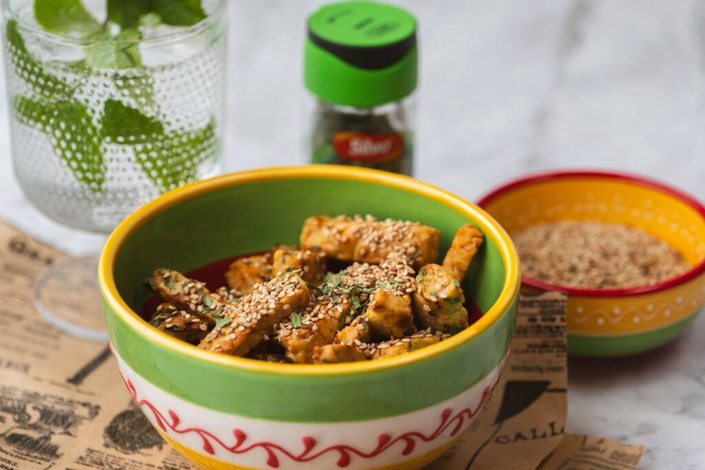 En nu het belangrijkste ingrediënt van dit recept: 'Tempeh'. Tempeh is een eiwitrijke plantaardige vleesvervanger, die per 100 gram ongeveer 17-19 gram eiwit bevat. Het is een goede bron van eiwit en andere voedingsstoffen, en het fermentatieproces maakt het ook nog eens beter verteerbaar.