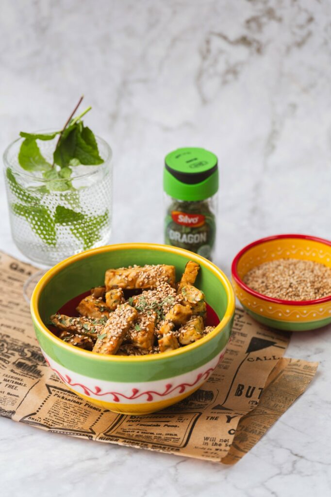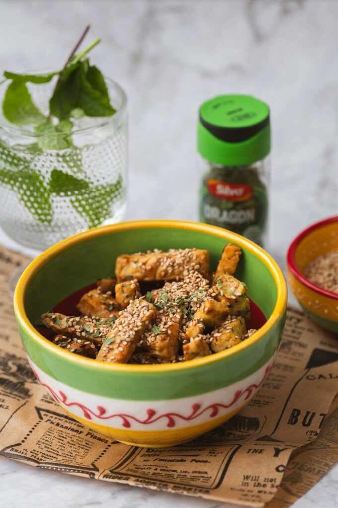 Dit recept voor gemarineerde tempeh met dragon is voor 2 personen.