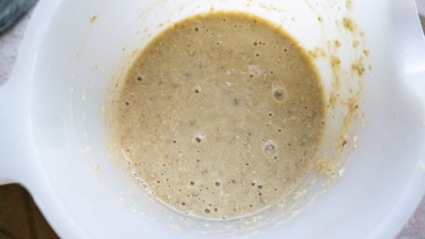 MIx dit met de staafmixer tot een romig beslag. Is het nog te dun voeg dan nog wat havervlokken toe.