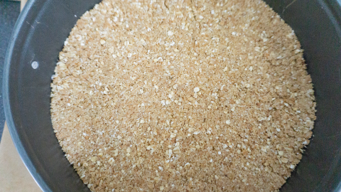 Beleg een springvorm (24 cm) met een velletje bakpapier. En vet de randen in met een beetje kokosolie.