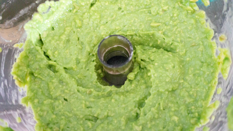 Ontpit de avocado's rasp de schil van de limoenen (circa 7 gram + extra voor garnering). En pers de limoenen uit tot je 100 ml sap hebt. Doe nu de avocado's, rasp en sap van limoen, honing en een snufje zout in een keukenmachine en mix tot een glad geheel.