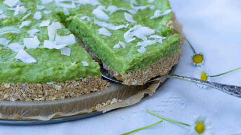 De avocado-limoentaart leken mijn schoonzusje en ik wel heel erg lekker. Dus besloot ik deze eens te maken. Rens gebruikte dadels voor haar bodem, en daar houden mijn schoonzusje en ik allebei niet van. Dus besloot ik een andere bodem te maken. En daar is deze heerlijke bodem van pindakaas en kokos uitgekomen. Hij blijft wel een beetje korrelig maar dat vind ik juist wel lekker.