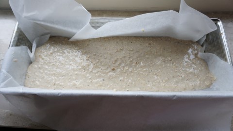 Vet een cakeblik in met bakspray/ olijfolie zonnebloemolie of kokosolie en schep het kruidkoek mengsel in de cakevorm.