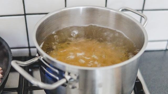 Breng een kookpan met water aan de kook. Snij de stam van de broccoli, en was de rest goed af en snij in kleinere stukjes. Kook de broccoli nu ongeveer 3 minuten.