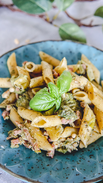 Pasta met groene vegan (dus ook lactosevrije) pesto doet het altijd goed. Mijn schoonzusje had dit heerlijke recept voor penne met pesto, dus deze heb ik mooi eens gemaakt toen mijn man niet thuis at. Want hij houdt hier nooit zo van terwijl ik de combinatie van (lactosevrije) room en pesto zo ontzettend lekker vind. De broccoli en de rode peper had ik nog liggen en deze heb ik nog extra toegevoegd.