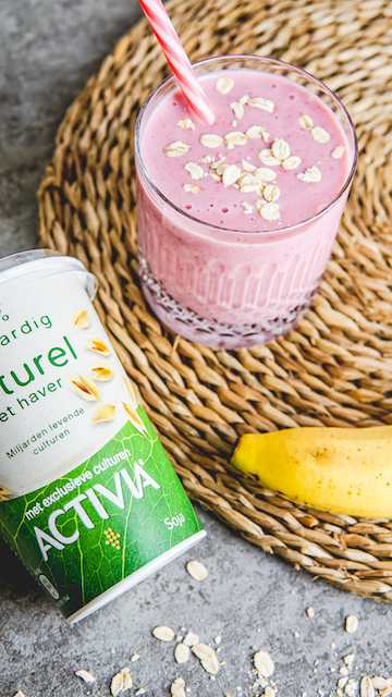 Smoothies! We hebben er weer één voor jullie. En deze keer gaan alle credits naar mijn schoonzusje. Ze appte me dat ze een lekkere smoothie gemaakt had en dat ik hem ook mocht want hij was vegan dus ook lactosevrij. Benieuwd wat dat nu betekend? Onderaan vind je er een blogje over waar ik het je uitleg. En je vind er ook een leuke review over de vegan soorten van Activia. Wist je dat Activia de Bifidus ActiRegularis bacterie bevat. En dat zorgt voor een gezonde darmflora. Activia plantaardig is een bron van calcium en eiwit en bevat levende culturen. Ze hebben maar liefst 3 verschillende lactosevrije (en vegan) smaken.