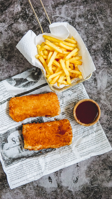 Verwarm de frietpan en bak de kaassoufflé in ongeveer 2-3 minuutjes. Kijk uit, want het gaat heel snel. En wil je een ham-kaassoufflé? Leg een plakje ham op de kaas en frituren maar. Serveer met Hela curry kruidenketchup of mayonaise.