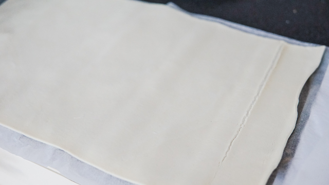 Haal het verse bladerdeeg 10 minuten van te voren uit de koelkast.