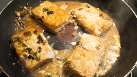 Bak ze ongeveer 7 minuten per kant. Draai de koolvis om en laat nog een keer 7 minuten garen.
