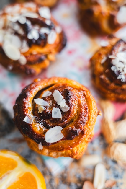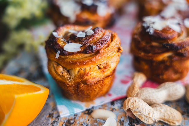 Smeer wat marmelade op een kwastje en verdeel dit over de cruffins. Verdeel de amandelschaafsel hieroverheen en aanvallen maar!