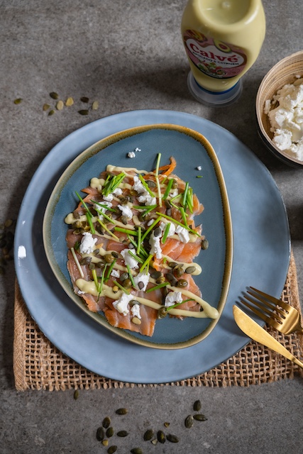 Voilà, je heerlijke lactosevrije zalmcarpaccio is klaar!
