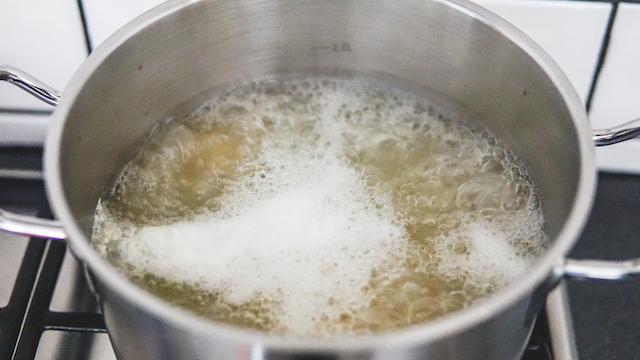 Kook de macaroni volgens aanwijzing op de verpakking. Giet vervolgens af in de gootsteen.