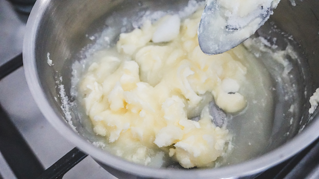 Knijp de gelatine uit en voeg aan de roomkaas toe. Zet nu je hittebron uit.