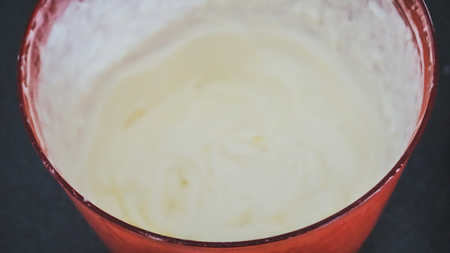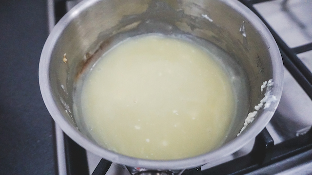 Doe de lactosevrije roomkaas, basterdsuiker en de vanillesuiker in een steelpannetje. En maak even warm en roer net zolang totdat er een glad papje ontstaat.