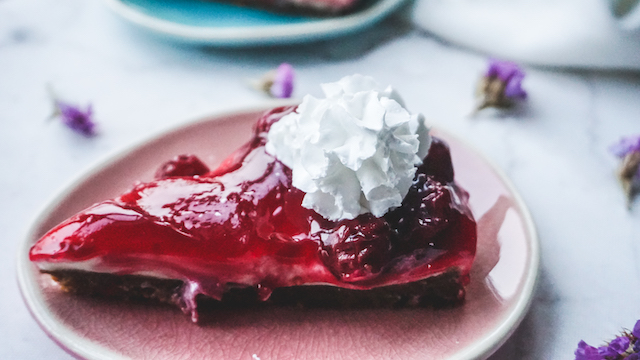 Zodra hij opgesteven is kun je de kersen er overheen verdelen.