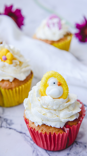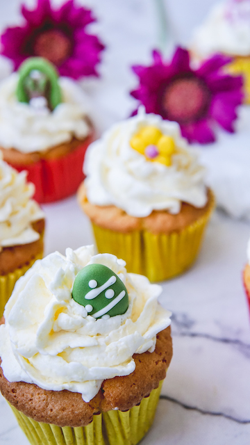 Deze Paas cupcakes zien er niet alleen heel mooi uit, ze smaken ook nog eens heerlijk. Cupcakes bakken blijft hartstikke leuk, dat gaat nooit vervelen. En met daar bovenop een heerlijke botercrème, mmm! Mij kun je er heel stiekem toch wel voor wakker maken ook al ben ik helemaal niet zo'n zoetekauw. Ook al is het nu een vreselijke situatie vanwege het corona virus, je kunt er thuis met je gezin toch wat leuks van maken tijdens de Paasdagen. En daar passen deze verrukkelijke cupcakes perfect bij.