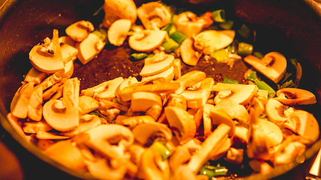 Bak de champignons ook even mee en roer goed om.