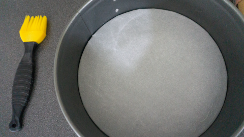Doe een bakpapiertje in een springvorm en vet de randen in met bakspray of olijfolie.
