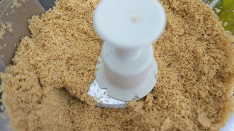 Maak de koekjes fijn met de keukenmachine of doe in een plastic zakje en rol er met de deegroller overheen totdat het fijn is.