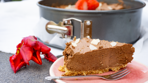 Pak de springvorm uit de koelkast. Giet het beslag in de springvorm en zet de chocoladetaart voor ongeveer 5 uur in de koelkast.