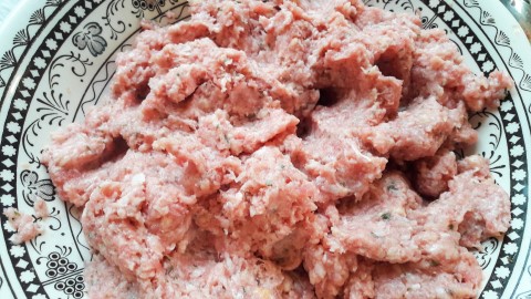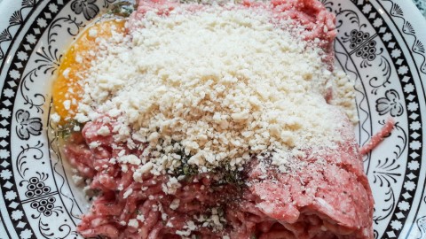 Doe het gehakt, paneermeel, fijngesneden peterselie zout, peper en de nootmuskaat in een kom. En voeg de twee eieren toe.